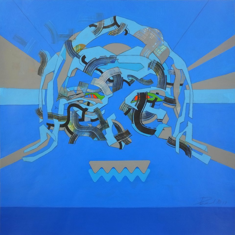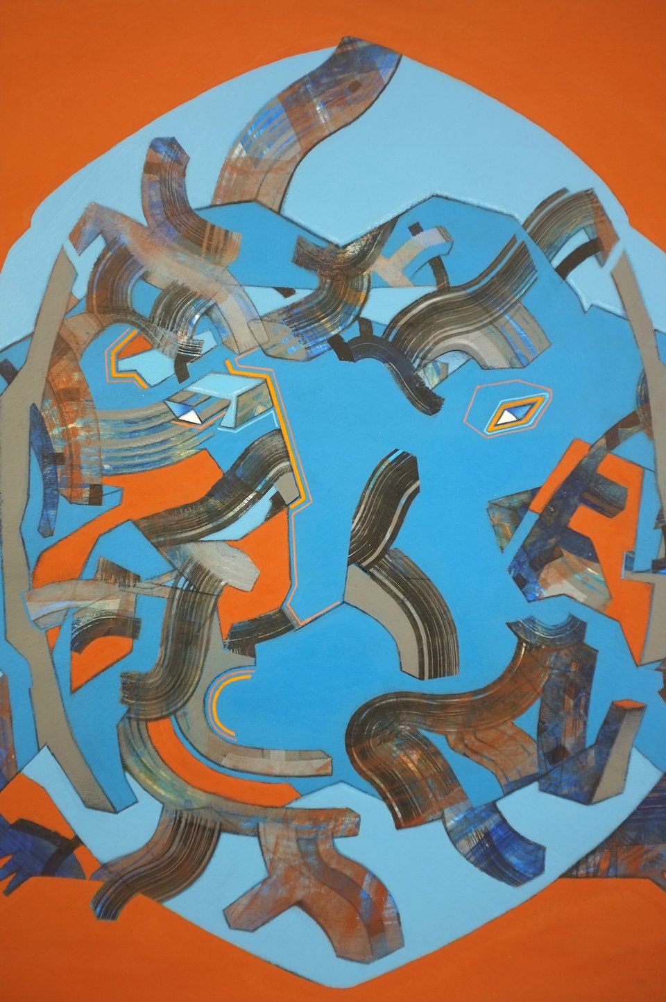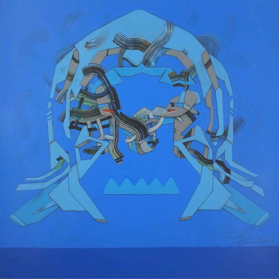 In this work, I create chaos only to organize it. Traces overlap, communicate, fragment, and intertwine, generating an energetic flow. From these interlacings, new spatial representations emerge, distorting perspective. The work must transcend my control and provoke questioning. Akin to calligraphy and automatic writing, I combine the spontaneity of lines with a prolonged reflection on depth, light, color, matter, emptiness, and fullness. I am influenced by Tai Chi Chuan and frequent trips to Morocco, which have instilled in me a passion for movement, arabesques, and the color blue…