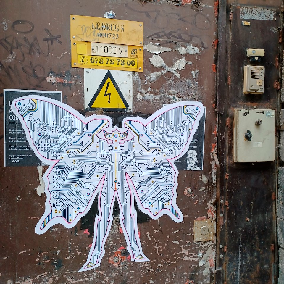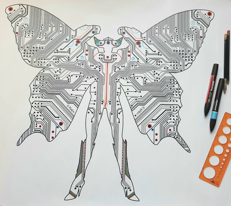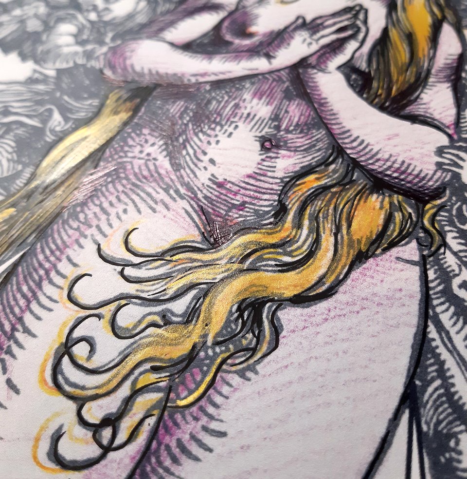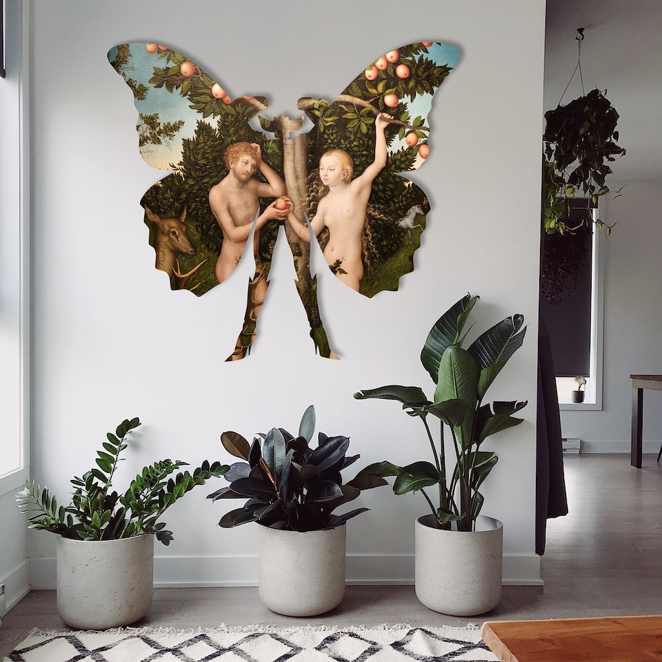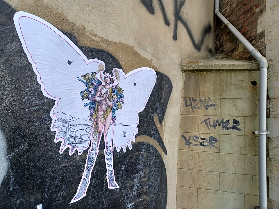 For that picture, I paint inspired by Martin Schongauer's engraving " The Virgin of the Annunciation " introduced into the body of a butterfly humanoid hybrid cut with a laser cutting machine.